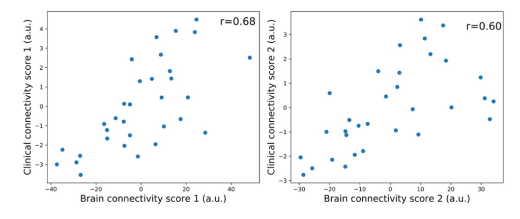 CCA determines multivariate linear combinations of clinical and FC data which are maximally correlated. However, in the case where more features than subjects are present in the data CCA cannot find unique canonical weights and becomes unstable [9, 10]. Therefore, we will use sparse-CCA which includes a penalty for the canonical weights forcing some of their values to become exactly zero. This also increases the interpretability of the model because not all FC/CAPS scores will be part of the canonical variable. The level of sparsity can be determined in a data-driven way by either performing permutation testing [8, 9] or cross-validation [11] for each modality individually. Also the amount of canonical variables to choose can be found in a formalized way using permutation testing [12]. The FC data will then be transformed into its canonical space creating a single brain score per canonical weight and clustering will be performed. We will apply common clustering algorithms such as hierarchical clustering or k-means clustering and estimate the number of clusters in a data-driven way using measures such as the Silhoutte score [13] or the gap statistic [14]. After the optimal number of cluster is identified we will assign the individual patients to their biotypes and perform statistical tests on their clinical and FC measures. In that way we will try to determine group differences between patients belonging to different biotypes. The discovered differences will then be verified in patients which were not used for the discovery of biotypes.