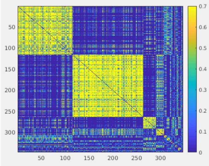 Figure 1: Group-level correlation matrix representing 20 unique communities resolved by PACO.